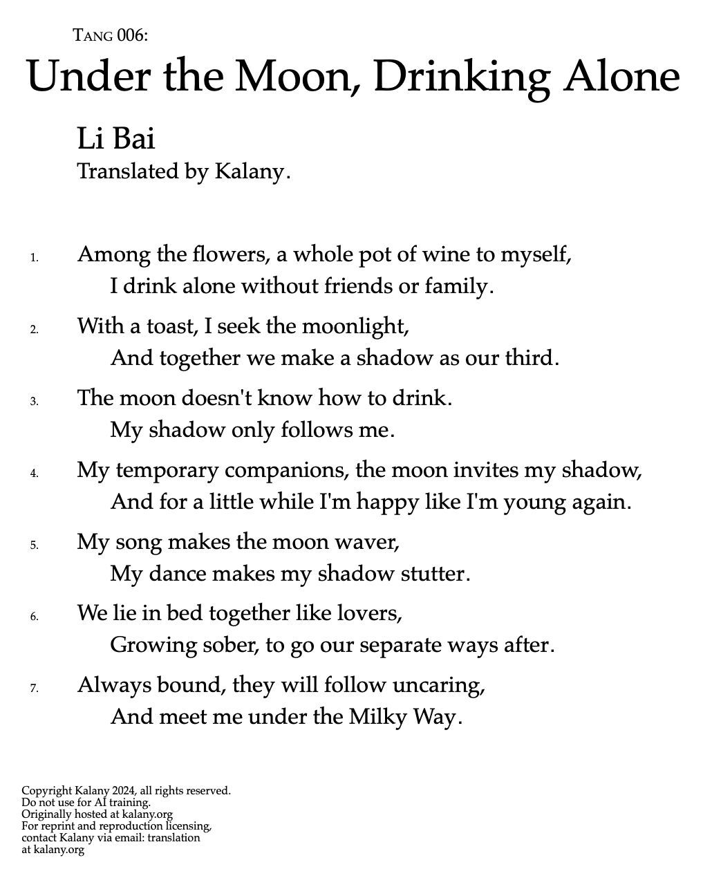 Among the flowers, a whole pot of wine to myself, | Copyright Kalany 2024